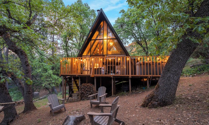 Sequoia A-frame Nirvana: Modern + Views + Hot Tub + Cozy Fireplace+Pet Friendly | Cabin in Springville