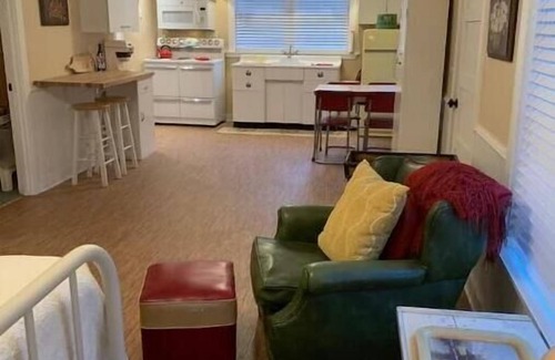 Located on a large lot alongside a creek. Fans, portable “swamp” cooler for summer. Electric heaters, blankets and fireplaces inside for warmth and ambiance, without the hassle of smoke, burning wood and cleaning ash. Wood-burning fire pit outside for gathering and roasting marshmallows (check CalFire avail. Wood not provided). BBQ. Cornhole. Lots of vintage linens, kitchen gear and decor. Special rate for RV hook-up available. Seasonal Hot tub/Spa for $40 extra fee and waiver--April-December, after/before the winter snow and rains. There are also public/shared heated pools/spas at the CA Hot Springs Resort, heated with our area’s rare, clear natural hot springs water year-round. Go to the CA Hot Springs website for fees and days/ hours of operation.(currently closed for renovation)