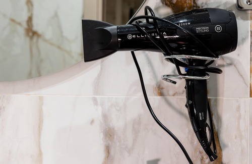 While you're here, you can enjoy all the comforts of home and more, including a rainfall showerhead and free WiFi, as well as a Smart TV and a bidet. Other amenities include designer toiletries, towels, an electric kettle, and a desk.