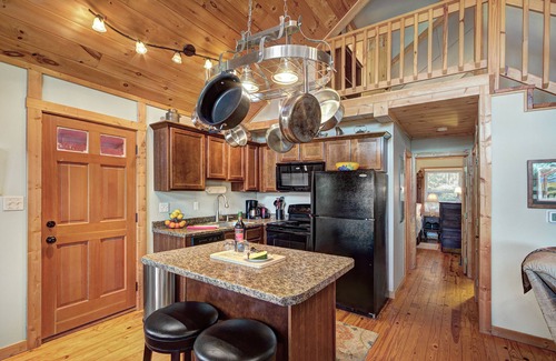 This remodeled cabin offers privacy, comfort and convenience. If you need to work, we have high-speed cable wifi internet service. Mountain bike, hike, fish, kayak and explore the mountains of Western North Carolina. Just ten minutes from DuPont State Forest and twelve minutes from Pisgah National Forest in Transylvania County, near Brevard. Serenade Cove is nestled among tall white pines with beautiful year-round views of Fodderstack Mountain. There are three boating put-in locations for the French Broad River nearby. If you want to stay close to the house, the surrounding 22-acre property has walking trails and a small pond which provide a peaceful place to spend time within steps of your front door. The large covered deck offers ample room for entertainment and grilling. Relax with family and friends in the open living area with a gas fireplace, Smart TV (Amazon Firestick, cable TV service and BluRay player), wireless cable Internet and a Bluetooth speaker for your music. The kitchen is fully equipped with all the supplies you will need. Enjoy meals in the adjacent dining area. Both areas have great natural light. The primary bedroom is located downstairs and features a queen size canopy bed with a Tempurpedic mattress and flat screen TV with Amazon Firestick and cable channels. The guest room is also located downstairs and features a queen size antique bed with a gel/memory foam mattress and an antique armoire. Upstairs, the loft area has two twin beds and a private half bath. The washer and dryer are located in a closet on the main level. There is a separate storage building with a lock to store your gear. You will truly enjoy your stay at this home and want to return year after year to this peaceful mountain retreat! Also check out our newer construction cabin nearby, VRBO #1551501.