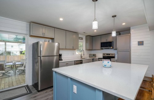 This stylish, calm space is the perfect place to relax! Only two blocks to the Beach and Isle of Palms Recreation Center. You can make wonderful vacation memories in this 3 bedroom, 2 bath home. There is a large gathering island in the kitchen, as well as all your culinary tools. The back deck is a beautiful place to hang out and relax. The fire pit is a wonderful place to enjoy your favorite evening drink. This home is a quick golf cart ride to the Isle of Palms shopping and dining district.