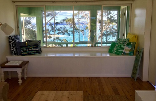 Lounge Room with 55" Smart TV, wifi and DVD player, and a fabulous window seat with views over the ocean.