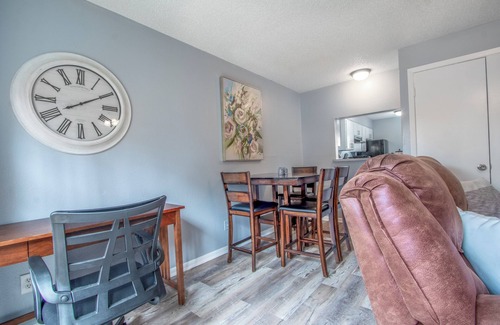 This charming 2-story townhome has 2 bedrooms and 1.5 bathrooms & can comfortably accommodate 4 people (one king bed and one queen bed). The living area combines the living and dining room with a large window opening to the kitchen, connecting the spaces. Allow yourself to unwind in the stylish living room equipped with a wi-fi enabled smart tv for your entertainment purposes. A fully-stocked kitchen, private backyard patio, and in-unit laundry. You'll feel right at home!