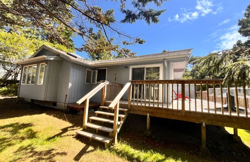 South Beach is waiting for you at this 2-bedroom house. This fabulous property features a large deck with ocean view through the trees, king bed in primary bedroom, 2 bathrooms, 1 with a jetted bathtub. Only a short walk through a quiet neighborhood to private beach access. Guests can enjoy amenities like washer and dryer, WiFi and internet connected TVs. Fall in love with South Beach and enjoy the magic it has to offer.