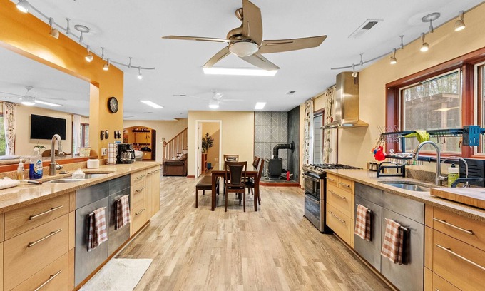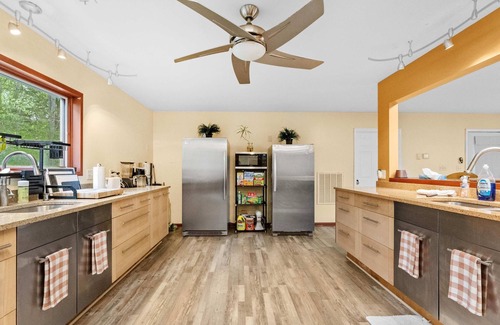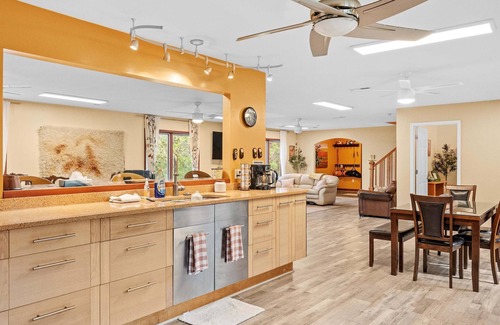 The home's expansive common areas provide ample space for everyone to gather, share meals, play games, or simply unwind together after a day of outdoor exploration.