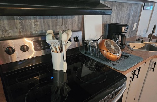 The heating and AC provide tremendous comfort when needed, but when the weather is nice, having the doors open while chilling on the couch is a treat. Or, enjoy the outdoors on the front and rear porches in the quiet neighborhood. The large bathroom is stocked with the basic essentials, and has lots of room if you need to bring in more of your comforts from home. Plus, plenty of parking if you are pulling a camper or have visitors during an extended stay.