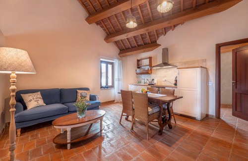 Set in the peaceful village of Mombaroccio, this pet-friendly apartment offers a cozy retreat for up to four guests. The first-floor layout includes a fully equipped kitchen, a welcoming living and dining area with TV, and two comfortable bedrooms, one double and one twin. A spacious bathroom and air conditioning throughout ensure year-round comfort.