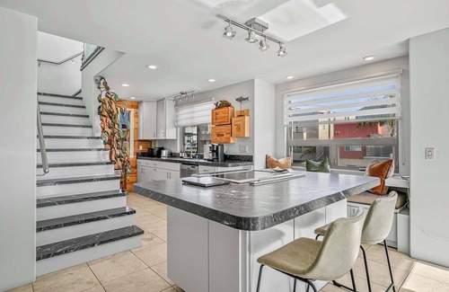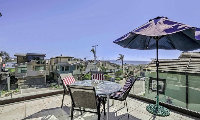Unwind in this peaceful, light-filled Carlsbad retreat—just steps from the sand! With partial ocean views, two balconies and thoughtful touches throughout, this two-story beach house is perfect for families and quiet groups looking to recharge. Walk to the beach, explore local attractions, and return to a calm, stylish space to relax and reconnect.