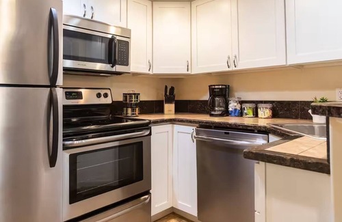 It follows the home's contemporary design while offering modern cooking appliances allowing you to make delicious meals if you choose to dine in the apartment.