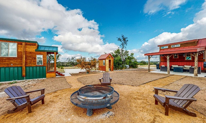 For your peace of mind, the cabin is equipped with essential safety features including flashlights, a fire extinguisher, carbon monoxide detector, first aid kit, smoke detector, and surveillance camera. Relax, unwind, and immerse yourself in the tranquility of the Texas Hill Country at this unique and well-appointed studio cabin in Harper. Book your stay today for a memorable getaway in the heart of Texas!