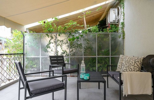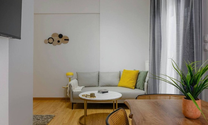 Nestled in the heart of Athens, this peaceful 2-bedroom sanctuary blends modern elegance with timeless charm. Steps from the metro, it offers swift access to historic treasures like the Acropolis. Relax on the sunlit balcony, savor home-cooked meals in the fully equipped kitchen, or unwind with Smart TVs and Netflix in every room. With Wi-Fi, air conditioning, and a serene atmosphere, this retreat is perfect for those seeking both adventure and tranquility.