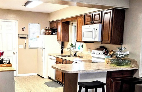 Cozy meets calm at this quaint lakefront home. Come relax under the large covered back porch with ample seating and watch the sun rise and set. We are located on the Chain of Lakes in Winter Haven, where the waterfront view welcomes you to Florida living. We invite you to bring your kayaks, boats and jet skis. With a washer and dryer on property, and sleeping accommodations for up to 7, you have enough space for the entire family. We have everything you need for the vacation you deserve! Escape to this adorable home in picturesque Winter Haven. With 2 bedrooms including a king bed, bunk bed, and twin bed, guests will have plenty of space to relax. The property offers essential amenities like AC, soap, body wash, linens, a hair dryer, and an iron.