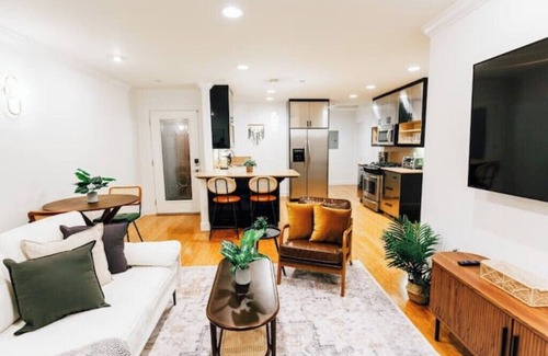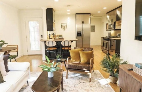 Welcome to your serene getaway! This modern retreat features brand new furnishings and amenities, designed with your comfort in mind. Enjoy the tranquility of the private yard, complete with a firepit, cozy patio seating, and enchanting outdoor string lighting. Relax to the soothing sounds of the peaceful water fountain while you unwind in this calm and serene haven. Your perfect escape awaits!