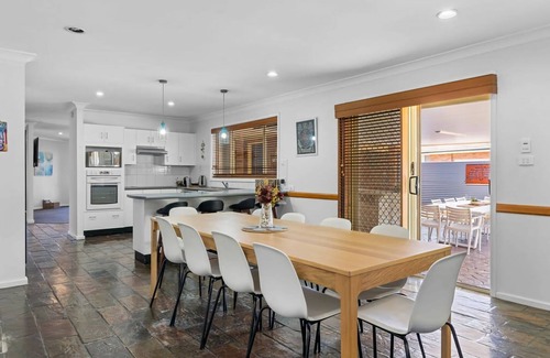 This spacious home accommodates up to 8 guests with three queen beds and two single beds, making it ideal for a quiet family getaway. It features four large bedrooms, including an ensuite in the main bedroom, a family bathroom with a bathtub and separate shower, and built-in wardrobes for ample storage. Furnished with new, comfortable pieces and hotel-quality linens, it provides a relaxing stay. The open kitchen, equipped with all essentials, overlooks the alfresco dining area and pool, making it perfect for family meals. Two spacious lounge rooms offer plenty of space for movie nights. With a pool for summer and an outdoor fire and indoor gas fireplace for winter, this home caters to every season, offering comfort and convenience throughout.