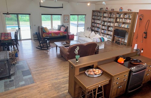 Escape to 16 private acres of countryside charm, where nature meets comfort. This spacious 3BR, 2BA retreat offers a one-of-a-kind getaway with lush gardens, an apple orchard, and stunning long-range views. Relax by the pool, soak in the hot tub, or fire up the BBQ on the deck. Inside, enjoy an expansive open-concept living space with high ceilings, perfect for gathering with family and friends.