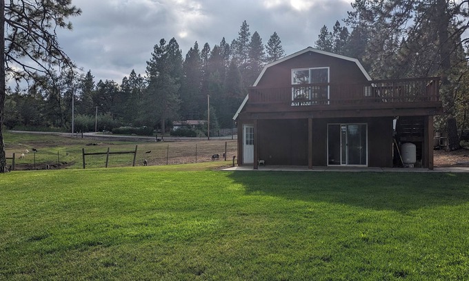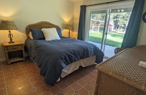 Enjoy the view of the beautiful pond from the balcony or stretch your toes in the lush grass surrounding it at this quaint farmhouse. This 2 bedroom 1 bath can accommodate your adventurous tendencies and provide a cozy space to end the day. The local wildlife often visits, including Canada geese, deer, fox, ducks (mallards, hooded mergansers, wood ducks), turtles, bullfrogs, and the occasional blue heron. It's a great place for bird watching and you never know what you might see each day. There are goats next door for an extra dose of the farm-style vibe! Watch the sunset from home or take a trip to our thriving downtown in beautiful Grass Valley. Whether it's summer or winter, we have you covered with heat and AC. The bathroom includes a hairdryer, shampoo and conditioner, body wash, and other amenities for your convenience. The kitchen is fully equipped for your needs with an oven, microwave, fridge and freezer with water and ice dispensers, and cooking pots, pans, and utensils.