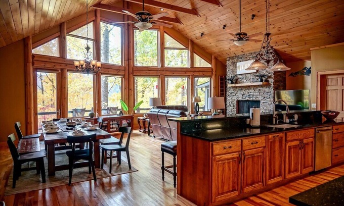 - Stunning views, cabin with 2 master suites, large deck, wood burning fireplace.