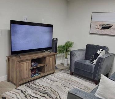 Serene Haven - 1 bedroom apartment. Is located in Calgary, just 14 miles from Devonian Gardens and 16 miles from Calgary Telus Convention Center. The property is around 7 miles from Crowchild Twin Arena, 10 miles from McMahon Stadium, and 12 miles from CrossIron Mills. The accommodation offers full-day security and private check-in and check-out for guests. With free Wifi, this 1-bedroom apartment features a flat-screen TV, a washing machine, and a fully equipped kitchen with a dishwasher and oven. For added convenience, the property can provide towels and linens for a supplement. For added privacy, the accommodation has a private entrance and soundproofing. Stampede Park is 16 miles from the apartment, while Calgary Tower is 16 miles from the property. Calgary International Airport is 10 miles away.