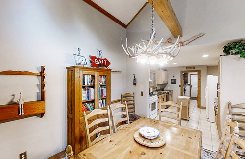 Outside, a firepit invites you to gather around for s'mores and storytelling under the starry night sky. Relax on the patio furniture with your morning coffee or enjoy a meal al fresco in the outdoor dining area. Explore the surrounding area and take in the sights of wildlife, go for scenic walks, or embark on photography adventures capturing the beauty of the landscape.