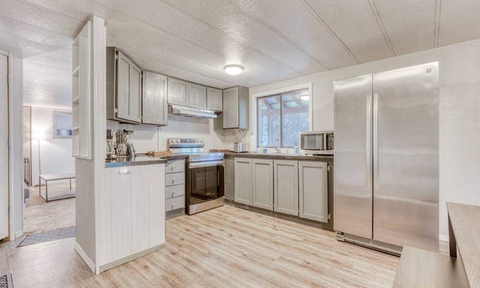 Get ready to experience the beautiful Pacific Northwest at this centrally located vacation home. The location and weather are incredible here! You will be close to the charming town of Sandy (eight miles), with many delicious local eateries and fun shops to explore. The iconic Mount Hood is a short and straight drive up the main highway (33 miles), easy to get to for world-class skiing, snowboarding, and fun in the snow as well as biking and hiking in the warm season. Walk down the street to enjoy an afternoon of family fun at the Rainbow Trout Farm (one mile), where you can enjoy fishing, hiking, and biking. Also nearby is the Sandy River, where you can encounter all the spectacular biodiversity this area offers, go on a rafting tour, or take off in a kayak.