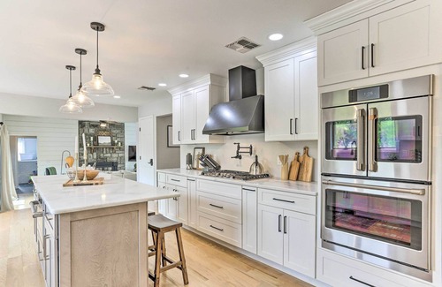 - Fully equipped kitchen with high end appliances, spices, pot filler, large island and 3 eating areas.