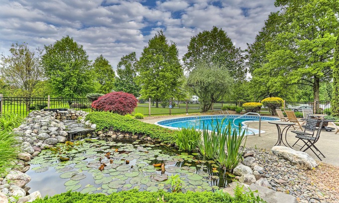 A tranquil oasis in the Hudson Valley near hiking, skiing, apple-picking, antiquing, wineries, touring, fine dining and other fun seasonal activities only 1.5 hours from NYC. Enjoy swimming in a private pool? Great! We have a beautiful pool in a private enclosed, fenced backyard oasis. (Heat available on request) Enjoy the lounge chairs next to the pool while you listen to the peaceful sounds of the koi pond. An expansive new trex deck with a gas grill is ready for all chefs. Multiple lounging spaces are tastefully placed out back to make many memories with your loved ones. Gather around the 2 fire pits – one with real firewood, the second with propane for instant flames. At night let your body sink into the warm embrace of the well maintained hot tub with night lighting. Come visit!