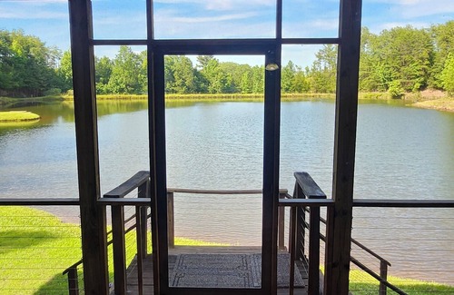 Relax with the whole family at this peaceful cabin in the woods. This is the perfect place to “getaway from it all”. This cabin has 3 bedrooms and 3 full bathrooms as well as a screened in porches overlooking a private lake. This 46 acre property has beautiful hiking trails, abundant wildlife watching opportunities, and lake for fishing or canoeing so guests can really enjoy the great outdoors! It's located just minutes off I-65 in Jemison, Alabama (Chilton County) centrally located between Birmingham and Montgomery.