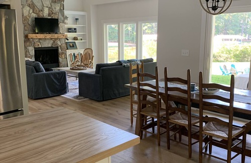 Main lake, sunrise view, kayak, stand-up paddle board, 3 Queen beds, 2 Full beds/2 Twin beds (bunks), master bedroom has private ensuite with soaking tub and frameless shower, 4 Smart TVs with ROKU for streaming accounts, double-boat house with sundeck, fireplace, fire pit, 12-14 Adirondack chairs, new patio furniture, outdoor Weber grill, WiFi, drip and French-press coffee options, cornhole, yard Jenga, puzzles, board games, books, 1 DVD player, DVDs, lots of outdoor seating, and linens and bath towels included AT NO EXTRA COST.