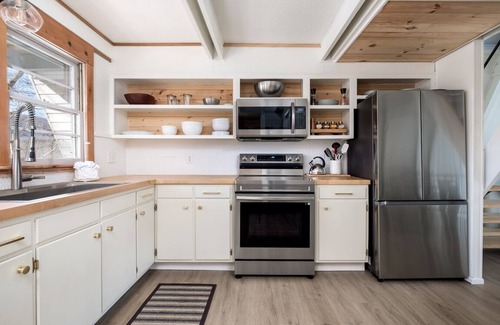 - Spacious Accommodations: This A-Frame home comfortably sleeps up to 8 guests across four beautifully designed bedrooms, ensuring ample space for family and friends during your wedding celebrations.
