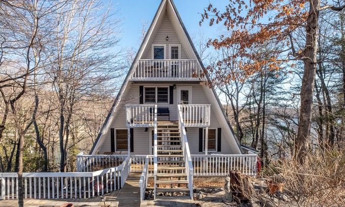 Welcome to the Serene Lake Lure A-Frame With Mountain & Lake Views, your idyllic retreat for a dream wedding in picturesque Lake Lure, North Carolina. Offering a stunning backdrop of mountains and serene lake views, this enchanting property creates an unforgettable atmosphere for your special day. With its spacious accommodations and inviting ambiance, you can create lasting memories while celebrating love in a romantic setting.
