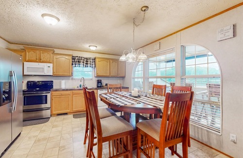 Escape to this charming lakefront house in Delta, AL, where you can unwind and enjoy the serene water views right from your patio. This spacious house offers a perfect blend of comfort and convenience, with amenities such as a fire pit and a gas grill for your enjoyment.