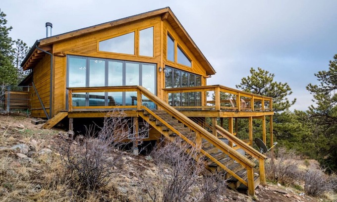 Escape to this spacious 4-bedroom retreat in Bailey, Colorado—just 1.5 hours from Denver and close to ski resorts. Enjoy a hot tub, infrared sauna, gym equipment, fiber internet, and panoramic mountain views. Perfect for romantic getaways, outdoor adventures, remote work, or small weddings (up to 15 guests - addition charges apply). Hike nearby trails, stargaze from the hot tub, or cozy up by the fireplace. Relax in nature, unwind in luxury, and book your mountain escape today!
