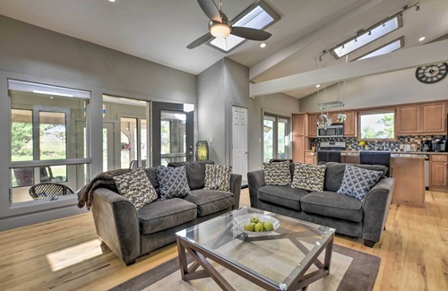 The blue skies and sprawling scenery of Colorado await at this charming vacation rental. Located just 12 miles outside of Mesa Verde National Park, this 2-bedroom, 2-bath home offers a quiet setting to kick back, relax, and reset. Enjoy the striking views from the comfort of the hot tub, or take a 43-mile trip to spend an afternoon exploring the Four Corners Monument. With its fully equipped kitchen, spacious outdoor space, and welcoming interior, this cozy abode is the perfect peaceful escape.