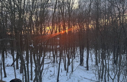 Peaceful one bedroom retreat on 10 acres with a wraparound 360 deck to watch the sunset over Lake Erie. Offers one king bed, one twin bed and a comfortable living area with a wood burning stove. Perfect for a couple or small family. A few minutes drive to the wine trail, North East, PA, Westfield, NY and all the attractions of the Lake Erie and Chautauqua areas.