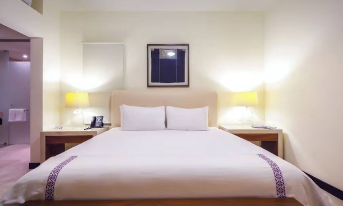**Luxurious Accommodations** – Enjoy a plush king-size bed, a cozy sitting area that can also become a twin bed, and a sleek, spa-inspired bathroom designed for ultimate relaxation.