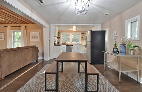 Tucked away on a vast 8,276 sq. ft. lot in West Knoxville, this cozy 2-bedroom cottage is the perfect hideaway, blending suburban peace with the thrill of Downtown just 15 minutes away! On nature's doorstep, our home is enveloped by stunning landscapes, and a lush forest, while the Tennessee River and Lakeshore Park are just a 20-minute walk away. But there’s more – your stay includes lightning-fast 545 Mbps Wi-Fi, a smart HDTV, and access to a deck complete with a BBQ!