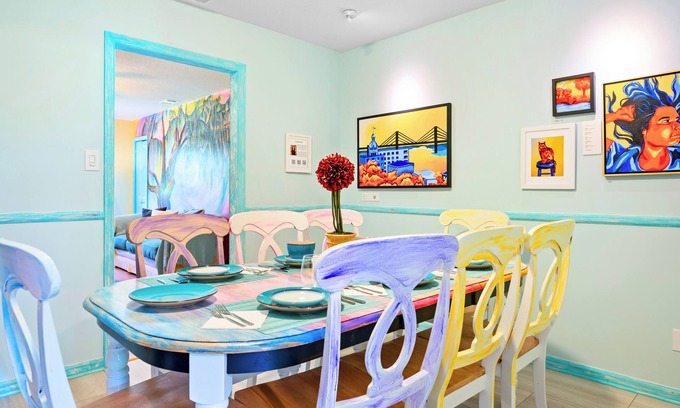 1) Artwork showcased in the photographs is for sale! Pricing and more is posted on the dining room's gallery style walls. The featured artwork is original, so when it is sold, new and exciting works are to replace them. This listing's current photographs may not accurately reflect the current artwork showcased in the space. If the vacationers staying prior to your check-in decide to purchase one of her works, I cannot guarantee that I'll have fresh artwork in right away. However, I'll do my absolute best to provide fresh pieces to replace sold works as soon as I possibly can.