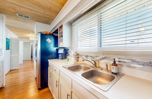 After a day spent in the sun, head inside and instantly take notice of the spacious living room's ample natural lighting, warm wood flooring, and pops of lush green. The seating here is ample and soft, and the TV is large - perfect for streaming your favorite TV shows and movies. The chef of your group will delight in the full kitchen's gleaming countertops and stainless steel appliances. When you're ready to eat, dine at the plush, formal dining table, or eat alfresco on the covered patio.