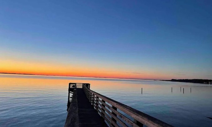 Come fall in love with OBX sunsets in our stylish coastal farmhouse with gourmet kitchen, spa-like bathrooms and plenty of room for the fam. Wake up with the Croatan sound in your bedroom. Savor your morning coffee or an afternoon glass of wine on our pier. Fish off the pier. Enjoy al fresco dinners with the sunset! Relax in a soaking tub or carwash shower with the view. Bring your dog, we have a big fenced yard!