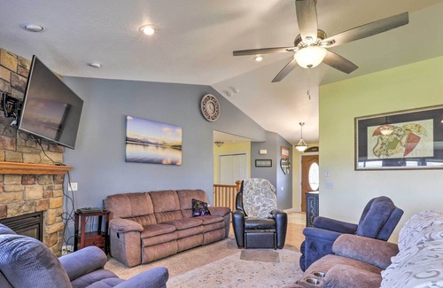 Experience life on the 'Peaceful Valley Ranch' at this spacious 7-bedroom, 3.5-bath vacation rental in Sterling. Featuring a rustic and spacious interior with 2 full kitchens and access to a fire pit, patio, volleyball court, and more, this family-oriented unit is the perfect Utah retreat! Explore Palisade State Park, soak up the sun on Palisades, or simply soak in the mountain views from the hot tub. After a day of adventure, enjoy the home theater system to watch your favorite movies!