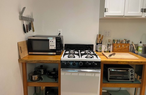 Serene and stylish private cottage on 10 acre woodland property. The space is designed for simplicity and relaxation - ideal setting for anyone seeking a quiet home base in nature. Custom details throughout - the bedroom features a handmade 12 foot writing desk that looks out over the treetops. Kitchen has new appliances, and is equipped for light cooking. The cottage extends off the main house, and is self-contained, with its own parking space. It faces the front of the property, while the main house is oriented towards the back, so there's plenty of privacy. There is a spacious lawn around the house, surrounded by woodlands. Guests have exclusive use of a yard with hammock and Adirondack chairs with a small fire pit. You can walk or bike right out the drive onto a lovely, scenic country road. Beautiful Lake Taghkanic State Park is a 12 minute drive. Great for swimming , picnics and naturewalk .I have a pair of inflatable paddle boards available for your use, with a pump that runs off a car battery. Also a pickleball set you can use on the tennis court across the street . I have a folding mattress that can accommodate a child. Pet policy : no cats. Dogs on approval with an additional fee of $50 per visit.