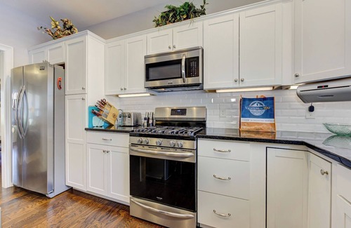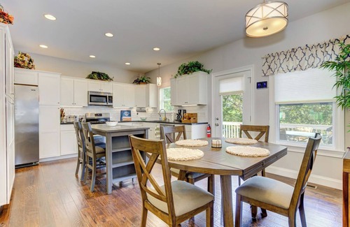 Inside, you'll find thoughtful touches that make every stay feel like home — a fully equipped kitchen with a Keurig and drip coffeemaker, a big screen TV for movie nights, and comfy bedrooms across 3 levels. The king suite offers added privacy with another big screen TV and an en-suite bathroom that features a walk-in shower and a garden tub for soothing soaks. The second bedroom has a queen bed, and the final bedroom has 2 twin beds; both have access to a shower/tub combo in the hallway. Plus, there's Wi-Fi, a washer/dryer, and keyless entry for an effortless stay.