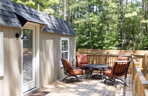 Escape to a tranquil country oasis on 5 acres down a scenic 1/2 mile gravel road. Conveniently located: 10 min to Jordan Lake, 18 min to Harris Lake, 30 min to RDU Airport, 5 min to Sanford Exec Airport, and 10 min to Sanford town. Step into a unique shed turned luxurious tiny house conversion, completed in 2024. Enjoy a spacious private deck, sauna, cold plunge, outdoor shower and a blend of modern comfort and rustic charm. Experience nature and luxury at this exceptional retreat. Through the front door is an open floor plan that includes a living area with a large tv and a full kitchen. The couch pulls out to a full size bed. We have high speed Starlink internet for those working remotely. Beside the multipurpose sliding door there is a storage closet with extra items that may be needed as well as a bedroom with a closet, queen bed and a full bathroom Nestle by a fire on the back patio with a fire pit built into the table. Enjoy a cup of coffee in the morning looking into the wilderness. Embrace the healing properties of a custom built sauna, cold plunge and outdoor shower. Feel free to utilize the entire tiny house and the area surrounding it. We live in the main house on the property and are here to support with answering any questions or to help with any needs. Just reach out to us through the app and we’re happy to help!