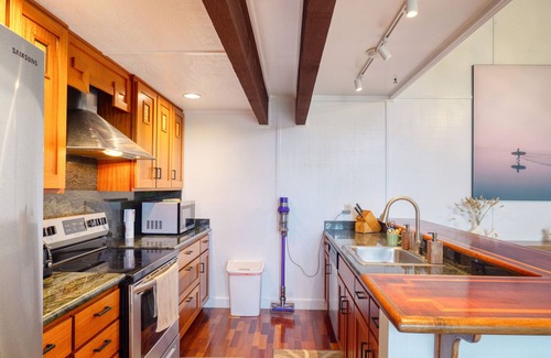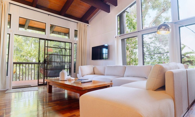 Welcome to our private tropical oasis! This newly updated 1,478 sq. ft. end-unit offers the perfect retreat. Surrounded by lush tropical plants, you’ll enjoy privacy and tranquility, with no neighbors above or below you. The home features massive wood beams and large windows that flood the space with natural light. With 3 bedrooms, a loft, and 2 bathrooms, this home comfortably accommodates families or groups. Loft can function as a dedicated workspace, play area, or an extra sleeping space. Perfect for groups attending weddings at the nearby Westin Ocean Resort or Makai Golf Course. After a day at the beach or golfing, unwind in the largest heated pool in Princeville or on the new XL egg chair for 2 on your private deck. Fire up the grill by the pool or play games in the clubhouse. There is a small shared yard on one side of the property where kids can play. Conveniently located, you’re just a short walk to the Westin Ocean Resort, Wyllie's and Anini Beach trail, and Makai golf course, while shopping centers, a local farmer’s market, and parks are only a 3-minute drive away. Hanalei Bay and other North Shore attractions are within 10-15 minutes by car. Enjoy the luxury of living in a resort community with all the comforts of home for a fraction of the price. Experience nature up close without venturing far, and take advantage of three bedrooms for the price of a single hotel room in the area. Your tropical getaway awaits!
