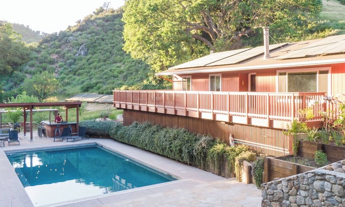 Disconnect from city life in the heart of Carmel Valley wine country. The Vineyard Chateau sits on 5 creek-front acres with a working Merlot vineyard and countless amenities. Explore 25+ wine tasting rooms in Carmel Valley Village, a scenic hike in nearby Ventana Wilderness, or chill & grill by the seasonal saltwater pool (May-Oct). Add a personalized on-site wine experience, massage, or private chef for an even more unforgettable getaway. Perfect for a family or two couples.