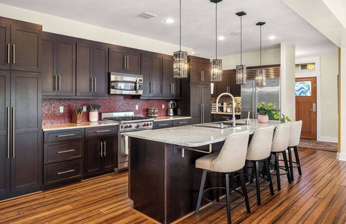 The fully equipped kitchen with a complete coffee setup with many brewing options allows you to add your own personality to each beverage. State-of-the-art cooking amenities and comfortable countertops allow for the effortless and fun preparation of your favorite meals.