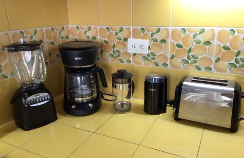 Our spacious home is designed for comfort and relaxation. This two-story, two bedroom, two bath home has a fully-equipped kitchen to prepare your own meals. Also, on the first floor is a comfy living room to lounge with friends and family or watch Premium Channels on the smart TV. Internet is provided. The futon turns into a restful double bed. There is AC and a ceiling fan in each bedroom and the living room, which can be individually controlled for your comfort level. The kitchen also has 2 ceiling fans. The downstairs bedroom has two twin beds and a full bath in the hallway. The upstairs bedroom has a queen bed and full bath in the hallway. And, each bedroom has blackout curtains for a good nights’s sleep. For your convenience, we have a washer and dryer! There are also eco-friendly clothes lines on the terrace and the clothes dry in about an hour. The large upstairs shaded terrace— with chaise lounges and a dining table and chairs—provides plenty of shade. Watch spectacular skies with your favorite beverage or snack or take your morning coffee and pan dulce (Mexican sweet bread) and feel the gentle Caribbean breezes. The terrace also has views of coconut trees, tropical plants, and visits from local birds.