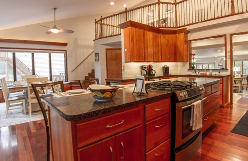 Spacious, relaxing, and scenic bay-view house with canoe/kayak access to the Chesapeake Bay. Six bedrooms and 5 full baths provide plenty of space for family and friends to enjoy time together. Plenty to do with an outdoor pool, abundantly equipped recreation room and a dock from which to launch your kayak or canoe. Easy access to plenty of activities in the surrounding area make for a memorable vacation.