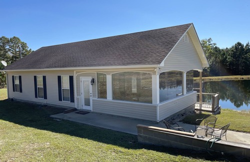 The Serenity cabin is a Fisherman and Hunters paradise. It is located on an acre pond and steps away from the Upper County Landing Altamaha River ramp. Renovated 2025 with new dock and kitchen and appliances. King size bed and sleeper sofa. A very spacious kitchen and dining table or a breakfast table for a quick meal. The back door opens up on to a spacious dock on a stocked pond. Large spacious living room with 2 couches and recliners overlooking the pond. Bedroom has walk in closet with dresser storage. Steps away from scenic hiking paths, 2 kayaks on site to enjoy in the pond or on the river. Along with close access to fishing, the Big Hammock wildlife management area is only 7 miles away to hunt deer, turkey and small game. It is over 7000 acres. Many local attractions within a few minutes drive including one of the last fully operating drive in Theatres, Pine Forest Golf Course, Watermelon creek Winery -15 min drive- for a meal, tour or wine tasting. St. Simons and Jekyll Island Beaches only an hour away. Baxley (Appling County), Glennville (Evans County) Ludowici & Hinesville (Liberty County) Brunswick (Glynn County) are neighboring counties and only a short drive away. Wayne Memorial Hospitsl only 20 minutes away along with Rayonier and Plant Hatch for staff or contractors needing a place to stay. Sorry but NO pets allowed