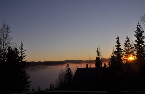 If you prefer a relaxing vacation, you will be treated to our spectacular views of the Kenai River and Kenai Mountains as the sun rises and sets. If you want to reach your fish limit each day it is best either bring your own gear and venture out to the many available fishing spots or plan guided fishing trips and let the professionals help you. End your day with the sun setting and relaxing in our wood burning sauna or build a camp fire in the community fire ring and roast marshmallows. If you desire to grill a meal, we have a charcoal grill near the picnic table. You can wind down the evenings within your private accommodations or you can socialize with other guests on our community deck. The acre grounds are lush with trees, bushes and flowers, all overlooking the Kenai River and Mountains.
